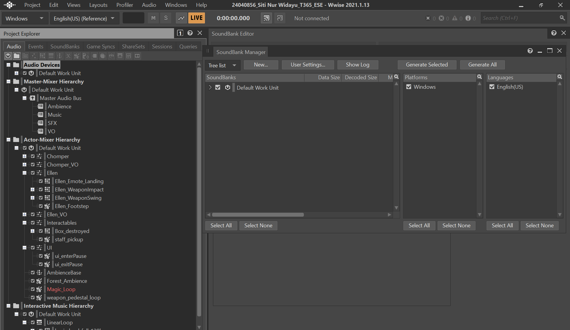 4th December 2025 Sound Design for Games Using Wwise to import and edit the game we are currently doing for our FA. Loops, music and SFX are all sourced on our own for originality.
